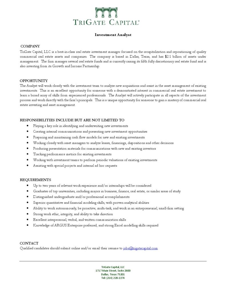 Pre-MBA Analyst Role – Clavis Capital Partners